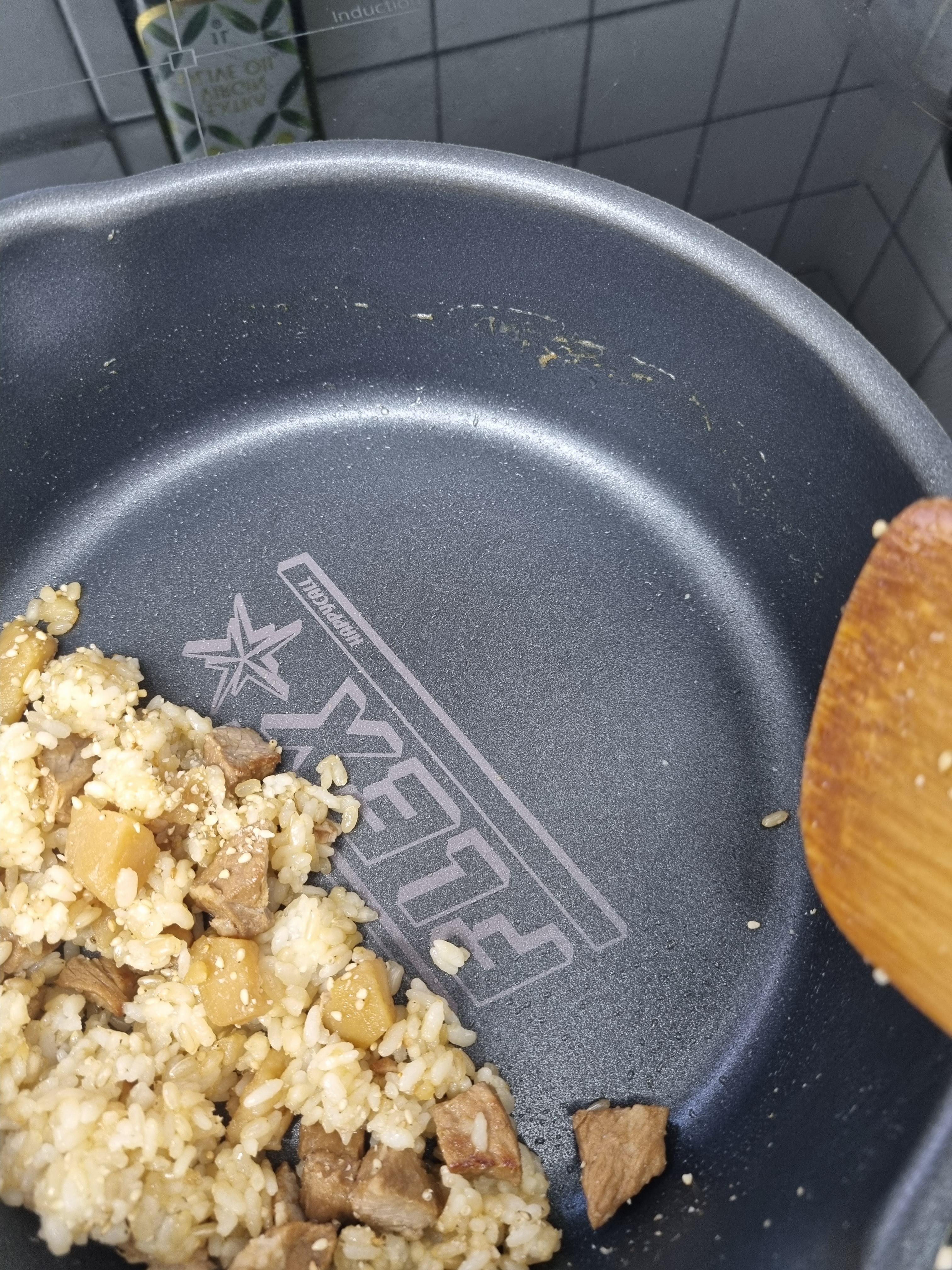 반대편도 슥! 밀어보았늗네 정말 깔끔하지요? 밥이나 감자등이 눌러붙은 흔적조차 없습니다! 인덕션 사용하시는 분이라면, 집에서 요리 자주하시는데 화력이 불만이신분! 인덕션으로 음식하면서 음식맛이 안난다고 생각하시는 분께 적극 추천합니다. 누가보면 해피콜 광고라고 생각하겠지만 정말 내돈내산하고 입이 마르게 칭찬하는!! 해피콜 플렉스팬 두 번 사세요~!!