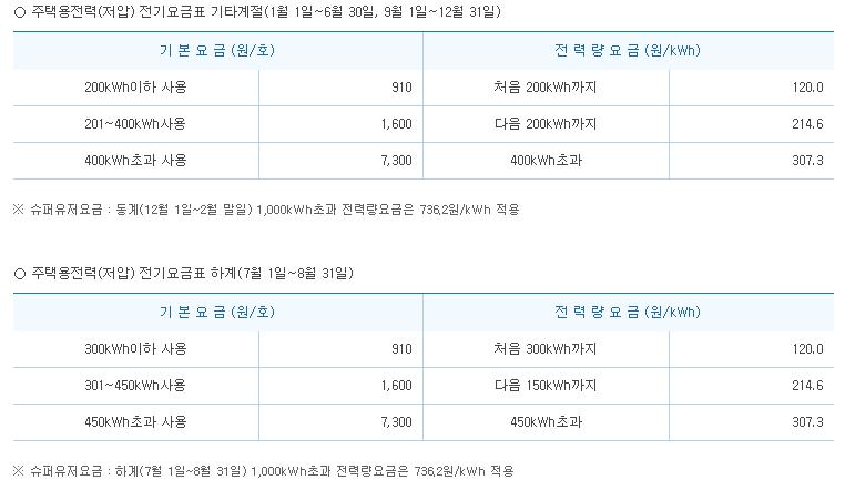 저 구간이 넘지 않게 사용하면 좋겠지만 요금때문에 갑자기 에어컨과 전기를 안쓰기 힘드니.. 전기절약 방법이 궁금하네요.
